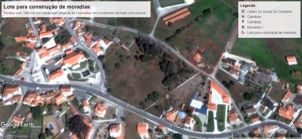 Lote de terreno com 1868m2 com projecto para 2 moradias em condomínio fechado com piscina . Localizado perto do centro do Coimbrão zona de eleição para muitos estrangeiros devido a proximidade de Praias, e as boas acessibilidades que possui .